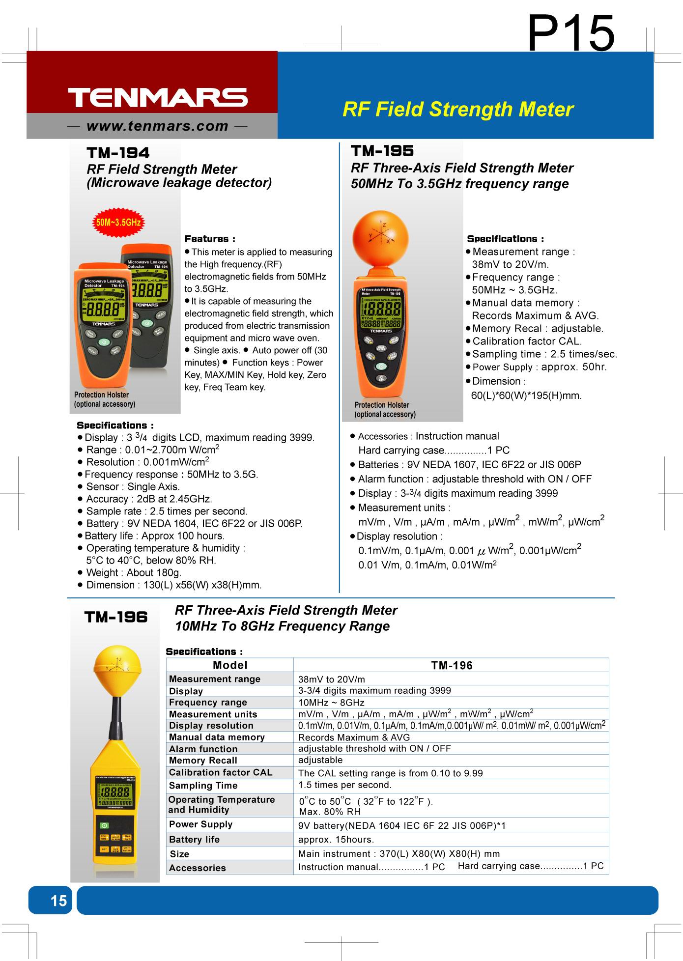 เครื่องวัดความเข้มคลื่นแม่เหล็กไฟฟ้า 3 - Axis RF Field Strength Meter TM-195 รายละเอียดทั่วไป: TM-195 ถูกออกแบบมาสำหรับการวัดและการตรวจสอบความถี่วิทยุ (RF) ความแรงของสนามแม่เหล็กไ...