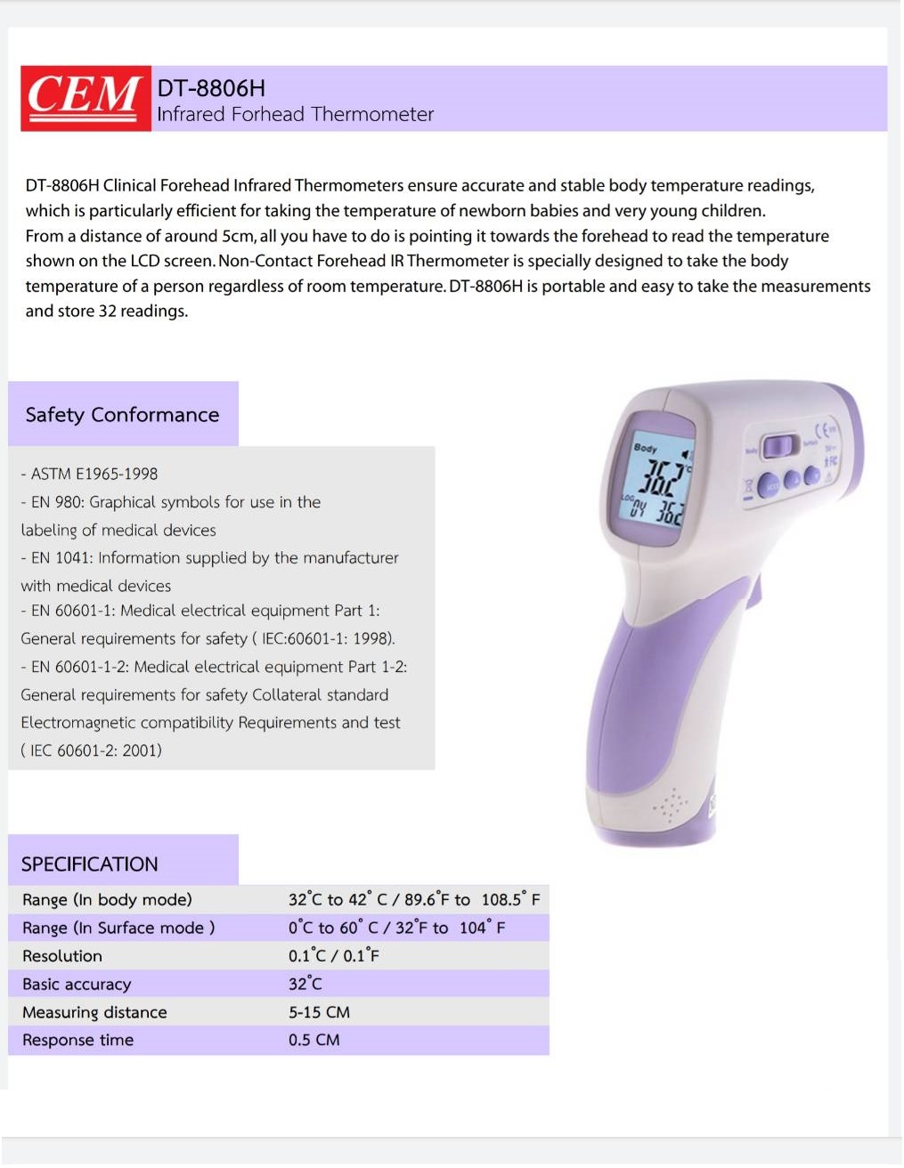 - เครื่องวัดอุณหภูมิทางร่างกาย CEM รุ่น DT-8806H