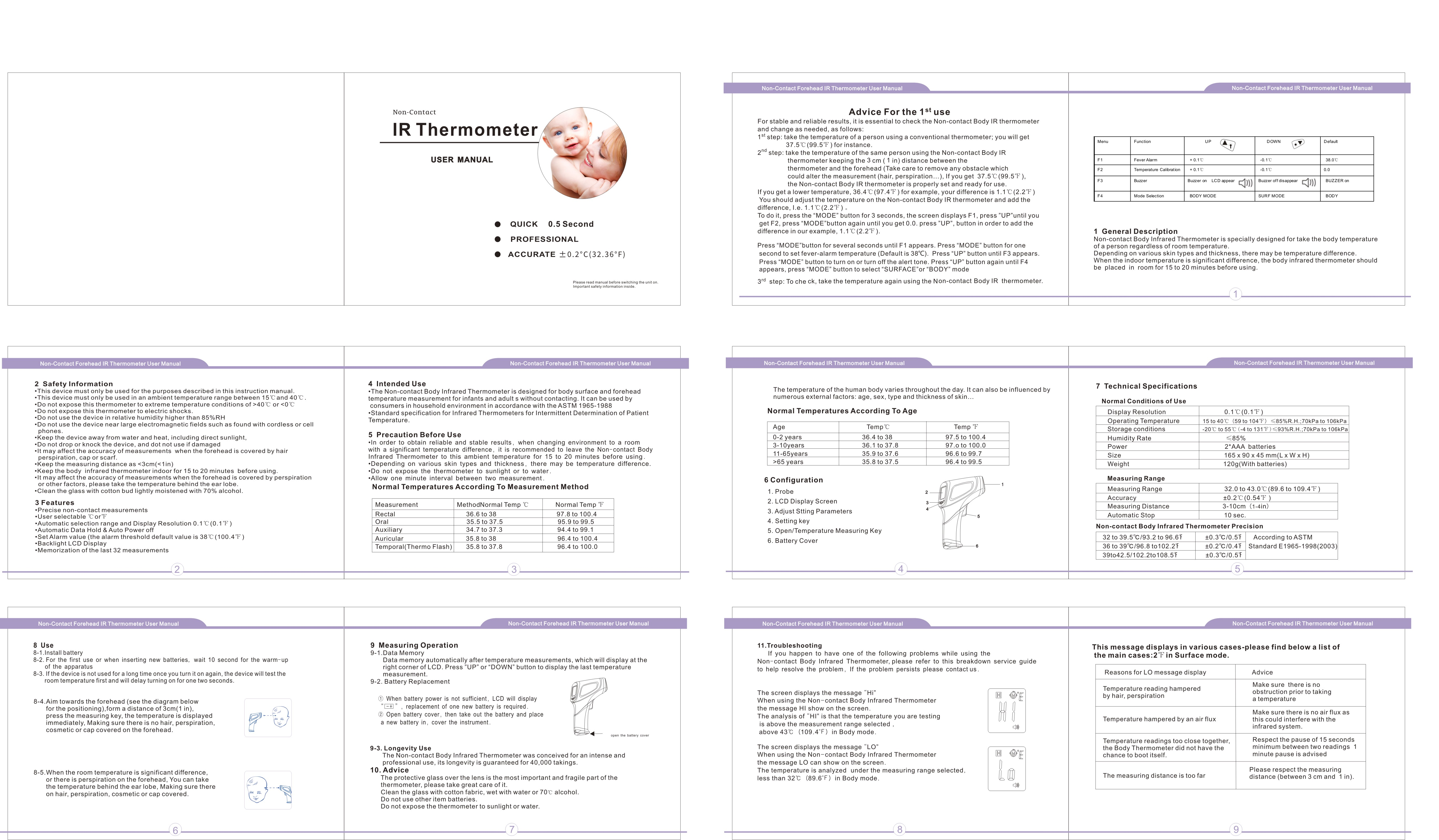 - วัดอุณหภูมิร่างกาย 32ºC ถึง 43ºC (89.6~109.4ºF)