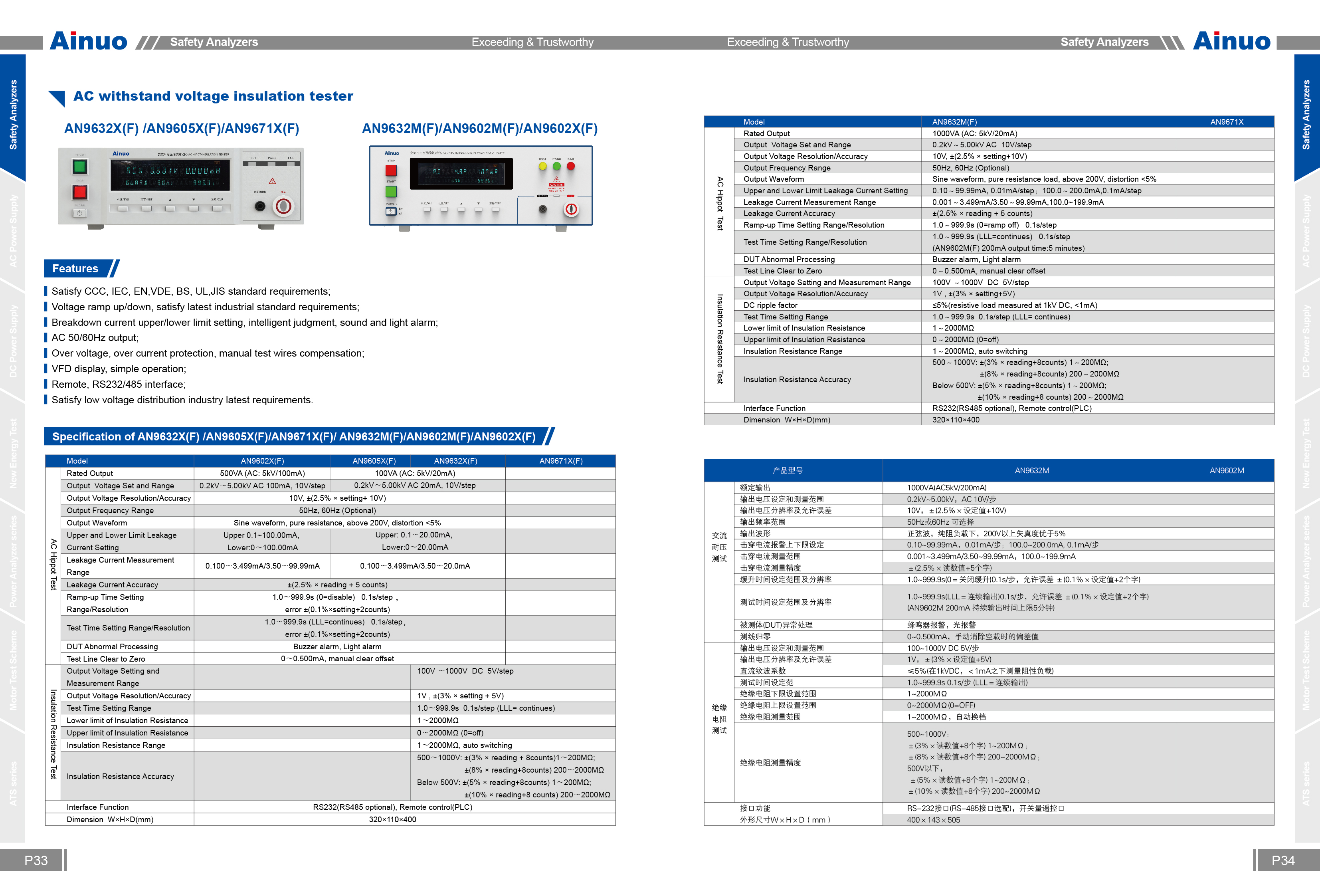 หน้าแรก > เครื่องทดสอบความปลอดภัยของเครื่องใช้ไฟฟ้า > เครื่องทดสอบการทนแรงดันไฟสูง (AC/DC Withstanding Voltage Tester: ACW/DCW) > Ainuo AN9602 ACW Tester